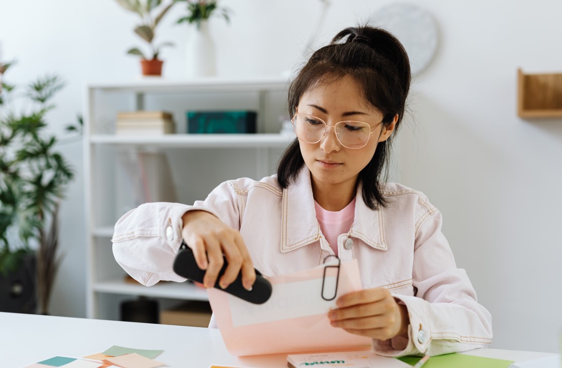 Wenn Sie das Glück haben, ein richtiges Büro in einem separaten Raum zu haben, versuchen Sie, es so professionell wie möglich mit Büromaterialien einzurichten: Notizbuch, Terminplaner, Kalender, Vision Board, Haftnotizen, Marker... alles, was einen fleißigen Eindruck macht.