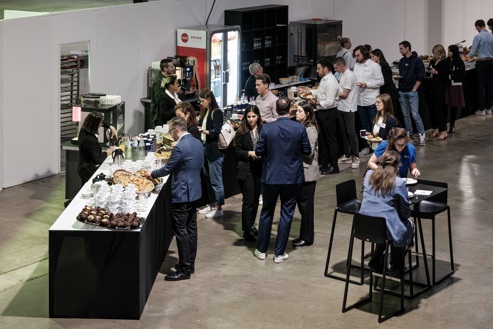 Frühstück im Ausstellerbereich vor der Eröffnung der Messe für die Besucher*