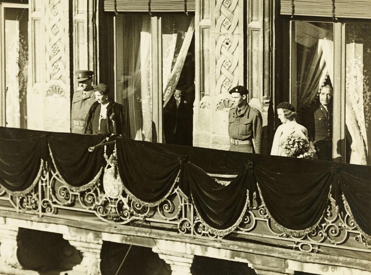 Die großherzogliche Familie und die Großherzogin auf dem Balkon des Palastes am 14. April 1945 (© Sammlungen des großherzoglichen Hofes)