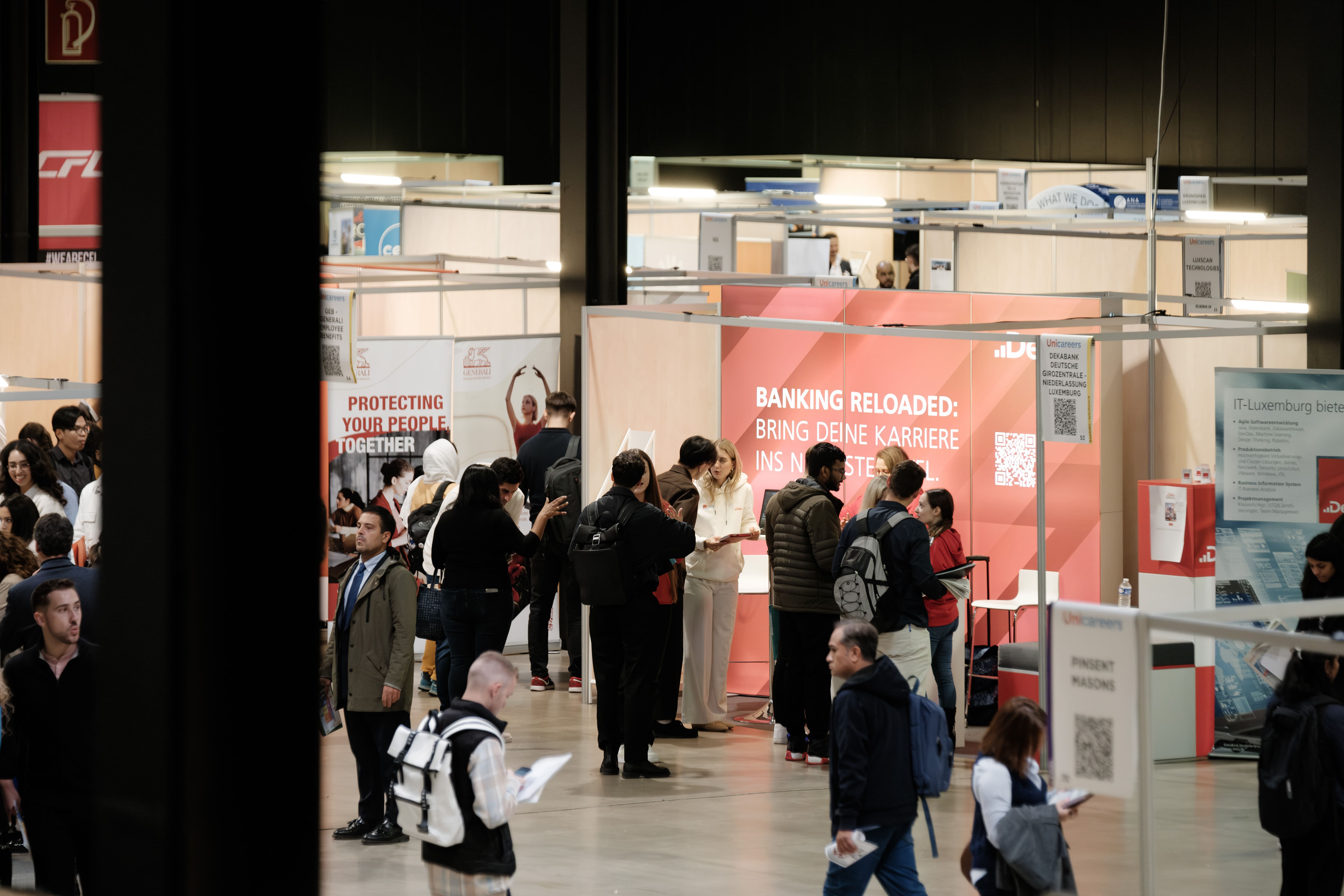 Platz für die neuen Generationen bei diesem unumgänglichen Event in der Luxexpo The Box am Freitag, den 26. September 2025. Die Unicareers-Messe ist ausschließlich Studierenden und HochschulabsolventInnen (mit bis zu 5 Jahren Berufserfahrung) gewidmet und bietet Ihnen Zugang zu den besten Unternehmen. Mit der Unterstützung von 450 europäischen Schulen und Universitäten ist diese Veranstaltung ein echtes Sprungbrett für Ihre Karriere.