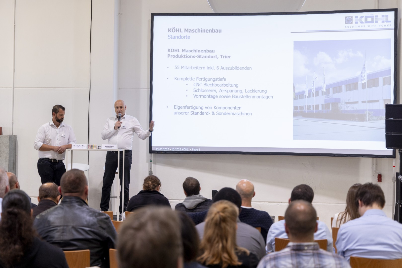 - Um 13:00 Uhr: Stefan Hahn (Geschäftsführer) und Christopher Dier (Manager Marketing & Kommunikation) von Köhl Maschinenbau stellten Karrieremöglichkeiten in ihrem Unternehmen vor (auf Deutsch).