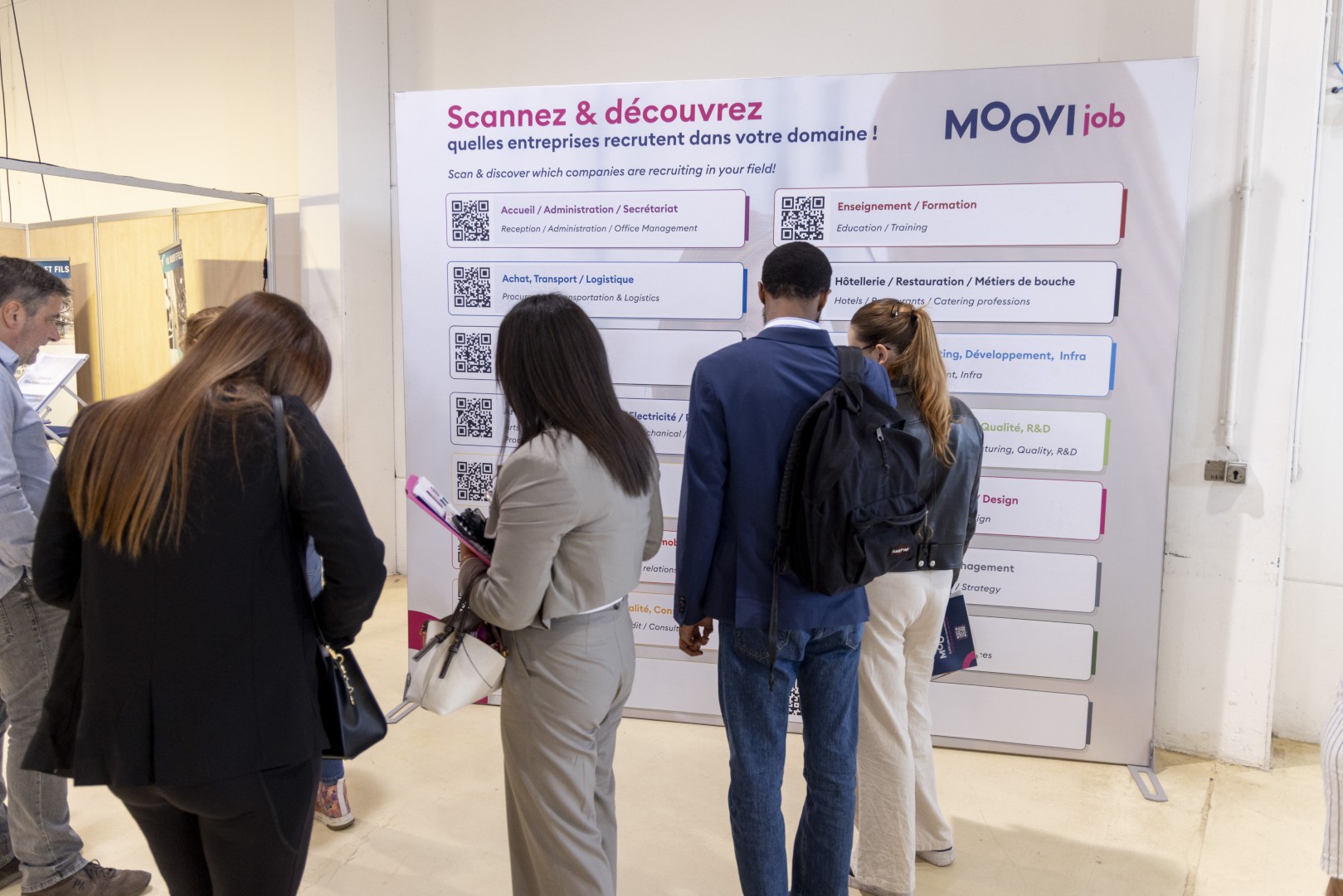 Auch Eric Kreutz aus dem Personalbereich von Fischer Panelux war begeistert von der Vielfalt der Bewerber, vom Lageristen über SPS-Programmierer bis hin zum Lkw-Fahrer. Das Team vom Digital Learning Hub lobte ebenfalls die Qualität der Gespräche: „Wir finden hier wirklich alles.“ und „Das sind andere Profile als auf anderen Messen von Moovijob.com.“ Neben der Vorstellung ihrer Weiterbildungsangebote suchten sie gezielt auch Kommunikationspraktikanten, mit Erfolg!