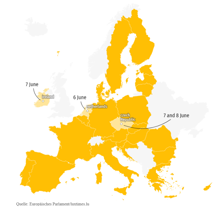 Termine der Europawahlen in den verschiedenen Mitgliedsstaaten