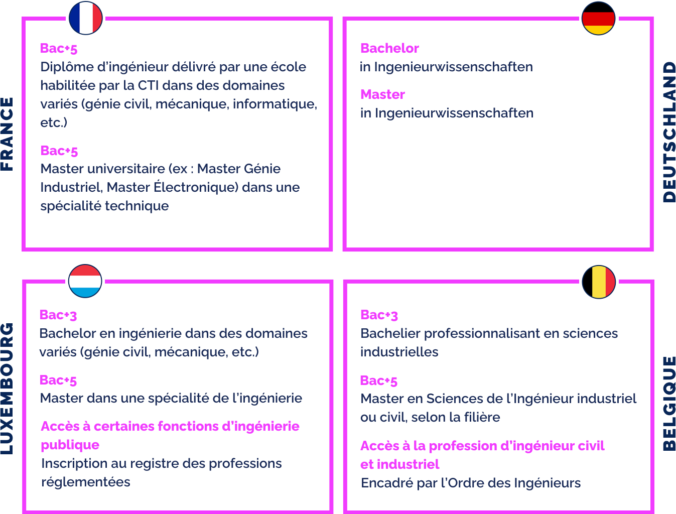 Abbildung mit den Qualifikationen in Frankreich, Deutschland, Luxemburg und Belgien für den Beruf des/r Ingenieurs/in in Luxemburg