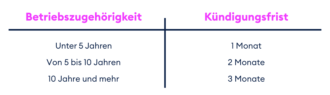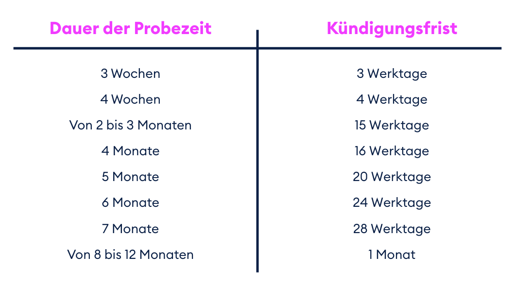 Nach Ablauf der zwei Wochen ist eine Kündigungsfrist verpflichtend, die sich nach der Dauer der Probezeit richtet: