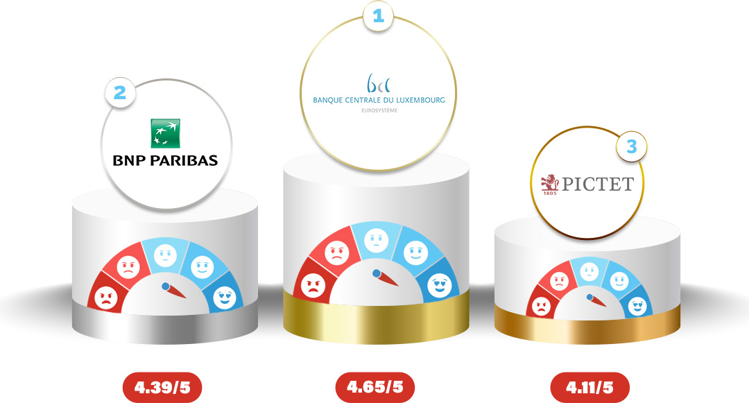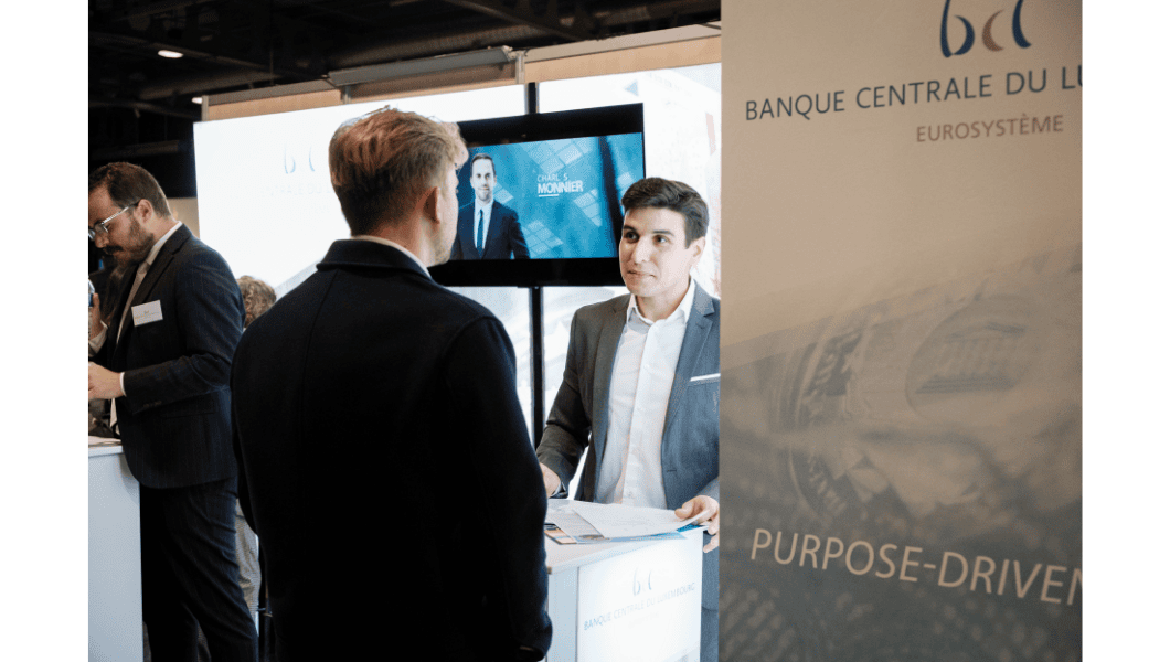 Zum ersten Mal schafft es auch die Banque centrale du Luxembourg auf das Podium (Attraktivitätsgrad = 4,65). Ein freundliches Team, ein offener und visuell ansprechender Stand weckten viel Begeisterung.