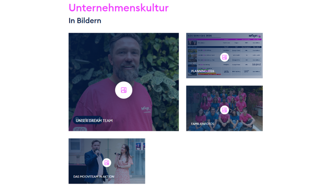 Beispiel für Fotogalerien auf der Unternehmensseite von Moovijob.com