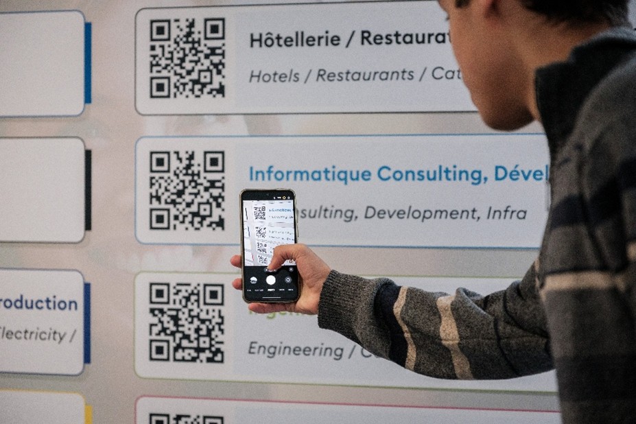 Am Veranstaltungstag erhielt jeder Besucher neben dem Messeplan den offiziellen Messeguide, der im Luxemburger Wort veröffentlicht wurde. Schon bei der Ankunft standen zahlreiche Services bereit: eine Garderobe, ein riesiger Messeplan, eine QR-Code-Wall mit allen verfügbaren Jobangeboten sowie eine Lounge Area, gesponsert von LGX – Luxembourg Geek Xperience, ideal zum Essen, Entspannen oder Spaß haben an Arcade-Automaten. Das Team von Moovijob.com war zudem am Infostand präsent, um junge Berufstätige den ganzen Tag über zu begleiten.