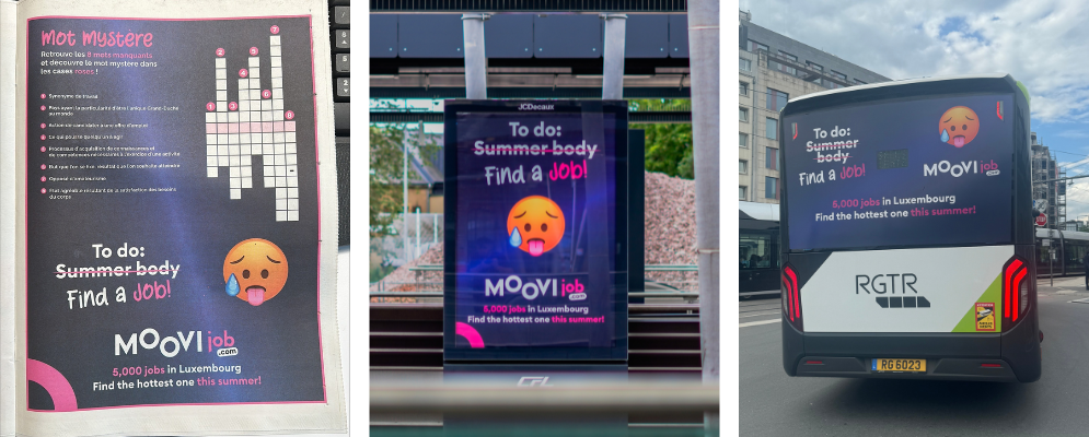 Also setzen Sie die Jobsuche ganz oben auf Ihre Liste und bereiten Sie sich darauf vor im Herbst zu glänzen. Für alle, die gerne mal etwas vergessen: Wir erinnern Sie den ganzen Sommer über daran! Es wird schließlich in den Sommermonaten heiß hergehen. Also vergessen Sie die Sonnencreme nicht und lassen Sie Moovijob.com den Rest übernehmen ☀️. Damit Sie uns nicht vergessen, freuen Sie sich auf jede Menge Afterworks, Neuigkeiten auf unseren Social-Media-Kanälen, ein Moovijob-Kreuzworträtsel in der Sommerausgabe der Zeitung L’essentiel sowie eine Plakatkampagne in der Innenstadt und auf den Bussen in Luxemburg. Ein vollgepacktes Programm für einen unvergesslichen Sommer! Bleiben Sie dran, damit Ihnen nichts entgeht...